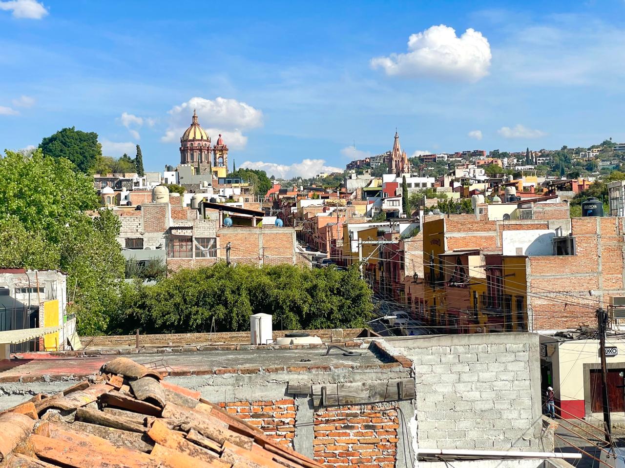 Estudio con chimenea.