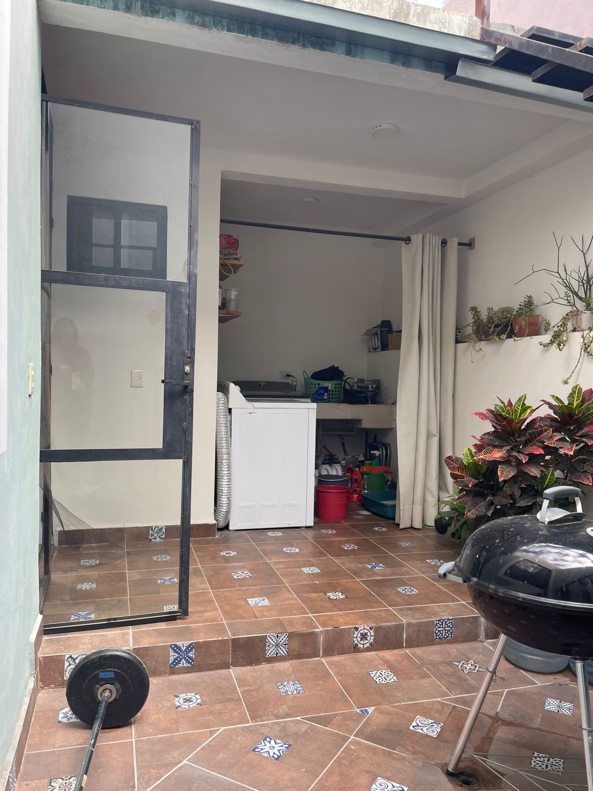 Patio de servicio con instalaciones para lavadora.